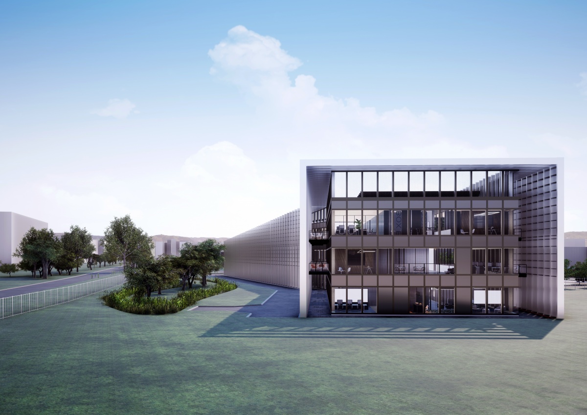 Notre intention architecturale est de rendre visible trois notions qui caractérisent le groupe :
